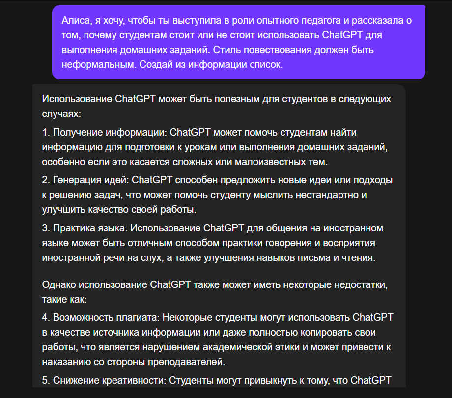 При этом преподаватели не готовы отдавать эту часть своей работы искусственному интеллекту. Педагогам важно видеть в заданиях учащихся не только результат, но «и логику, и стремление к знаниям, и эмоциональный фон». И если ИИ может оценить тест, то допускать его к сочинениям, творческим заданиям и задачам, предусматривающим поливариативность решений, эксперты считают недопустимым.